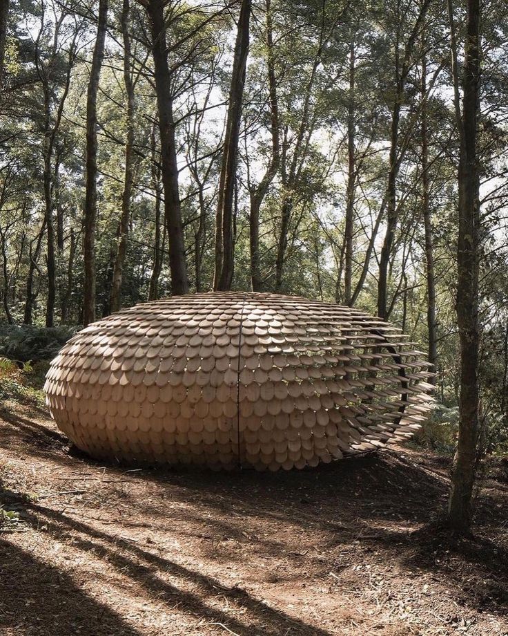Suspended between earth and sky, this sculptural treehouse rises like a dream among the oaks.A playful refuge for children and a sanctuary for grown-ups, it invites all to pause, laugh, and drift above the forest.An iconic piece of Apaulinha, where architecture becomes poetry in the trees.